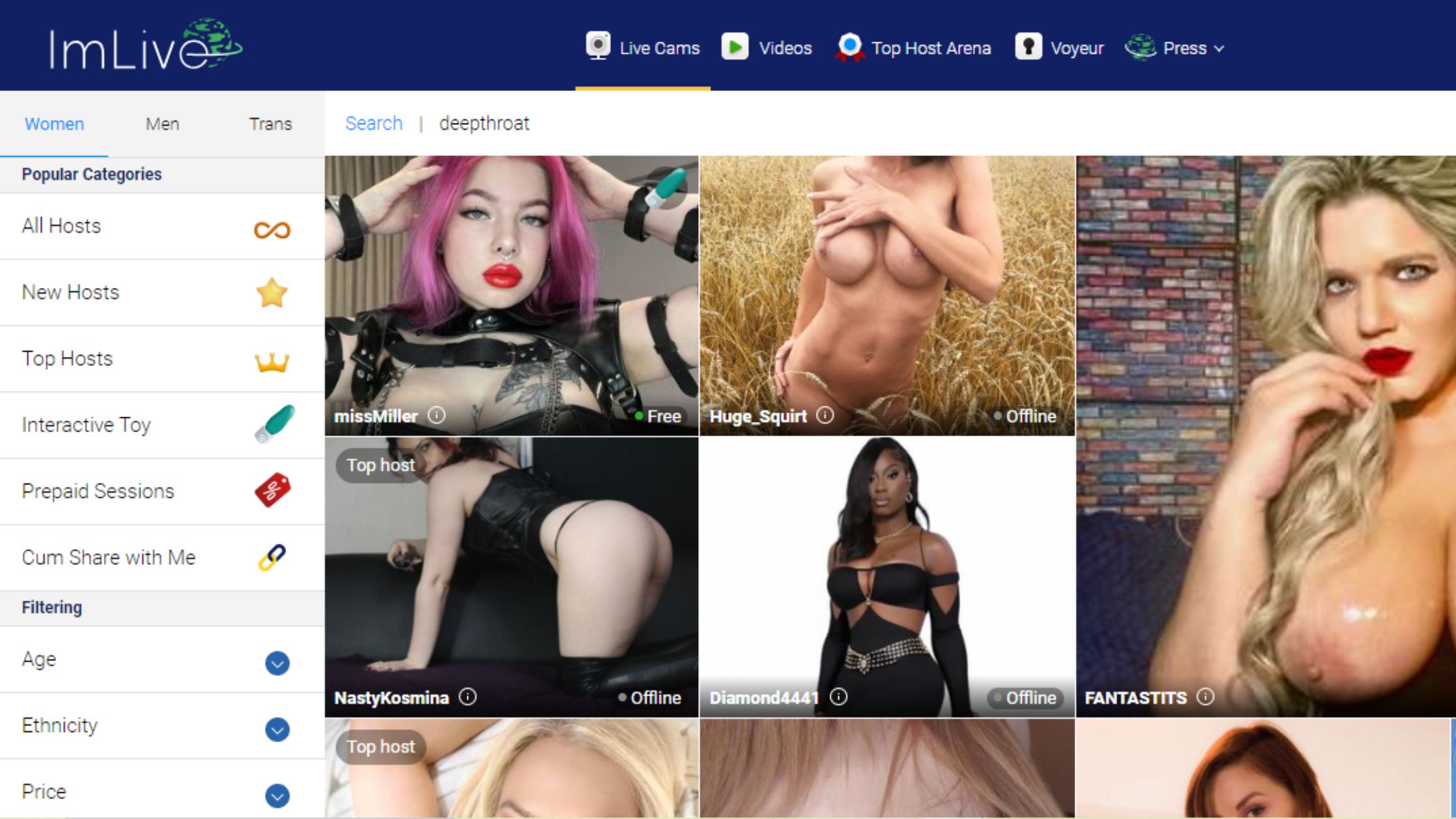 If amateur action is more your style, ImLive has you covered. This site is all about real girls giving real performances, and their deepthroat live cams are no exception.